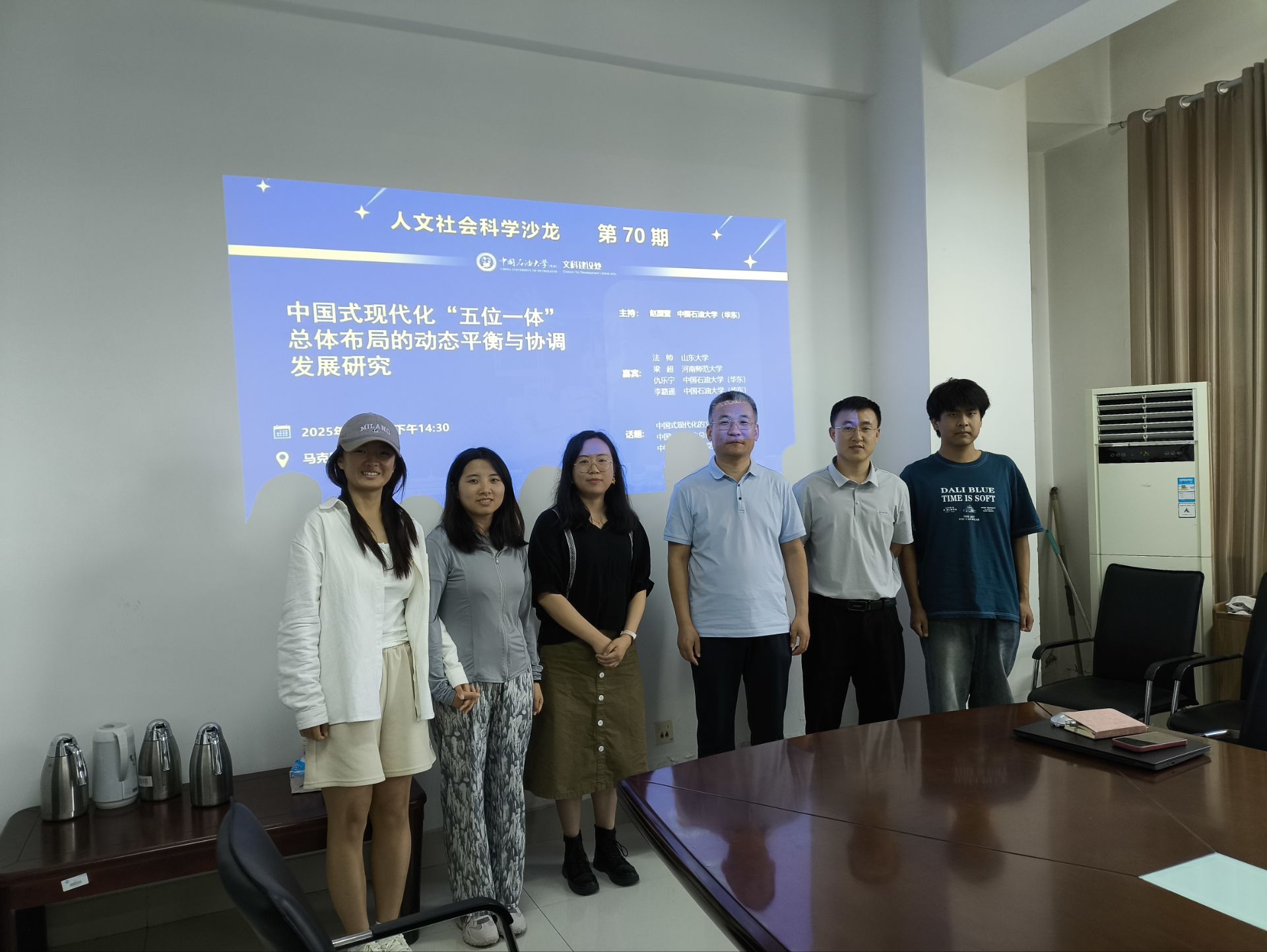 2025年6月17日上下午,第70期人文社会科学青年学者沙龙在文理楼462举行,主题为“中国式现代化‘五位一体’总体布局的动态平衡与协调发展研究”。此次沙龙由赵国营副教授主持,主讲嘉宾为山东大学副教授法帅、河南师范大学博士梁超和公司的李路遥博士、仇乐宁博士。sunbet部分硕博研究生参与了此次研讨。