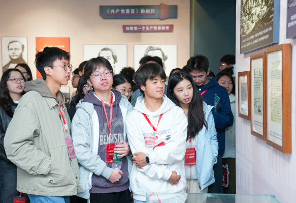 实践首日的“寻根之行”,从《共产党宣言》陈列馆拉开序幕。泛黄的史料、生动的现场讲解,将马克思主义的真理光芒具象化。当讲解员讲到“这本《共产党宣言》也成为国内唯一在农村党组织传播和使用的一本,被认定为国家一级文物,被誉为‘红色中华第一书’。”时,同学们纷纷驻足记录。此刻,曾经在思政课上学习到的理论与展馆中的文物、史料相互印证,让“中国共产党为什么能”“中国特色社会主义为什么好”有了最鲜活的注脚。